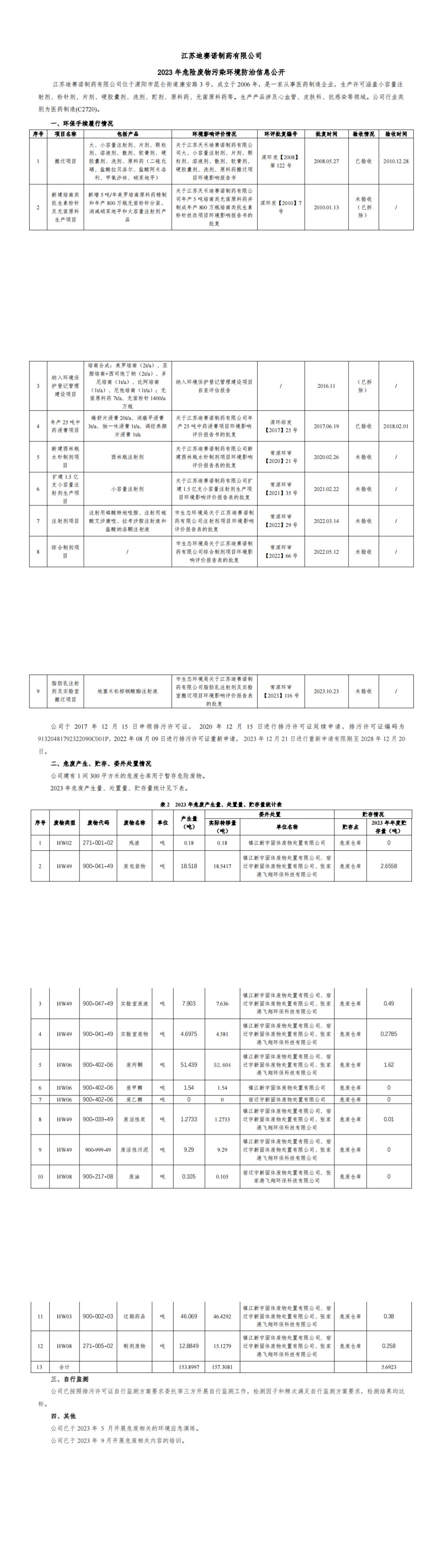 安博线上平台(集团)官方网站 2023 年危险废物污染环境防治信息公开
